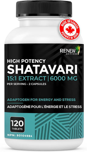 Renew Actives Shatavari 400mg – Natural Adaptogen for Energy & Vitality – 120 Capsules
